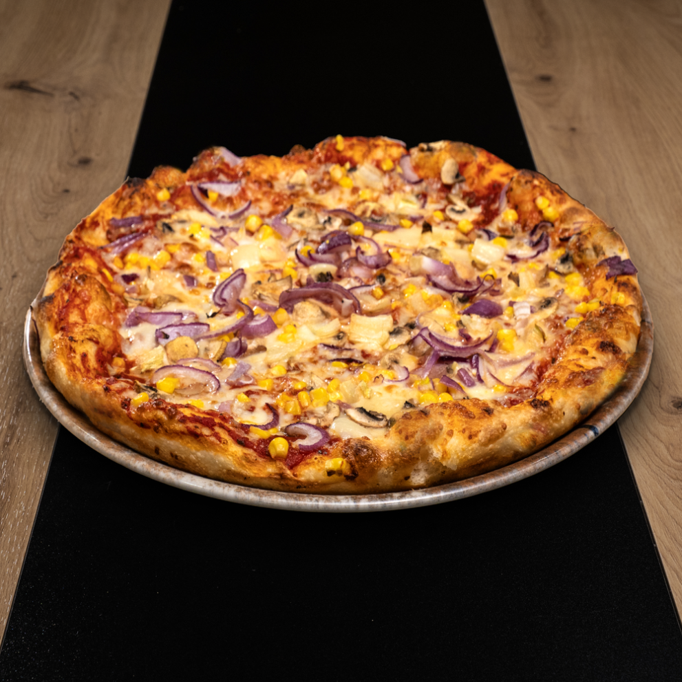 Hozzávalók: p.szósz, gomba, hagyma, kukorica, paprika, sajt